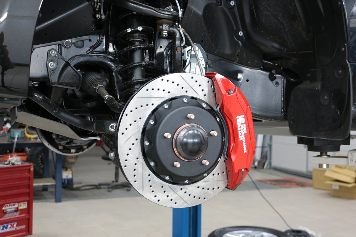 Full inspection of brake pads, discs, rotors, calipers, and fluid levels.